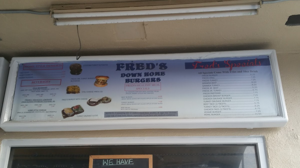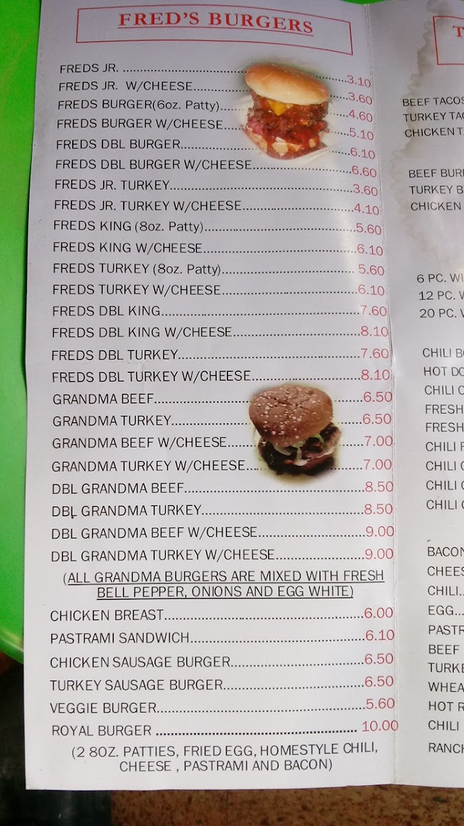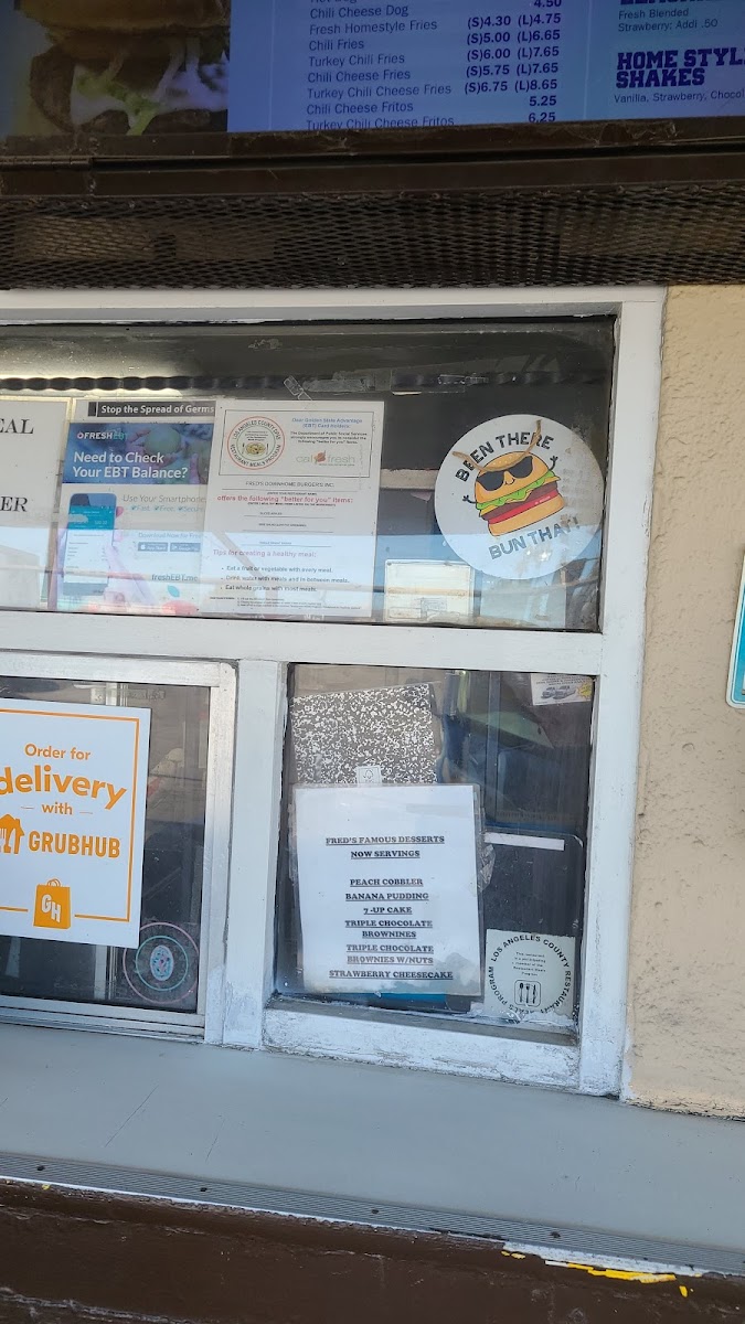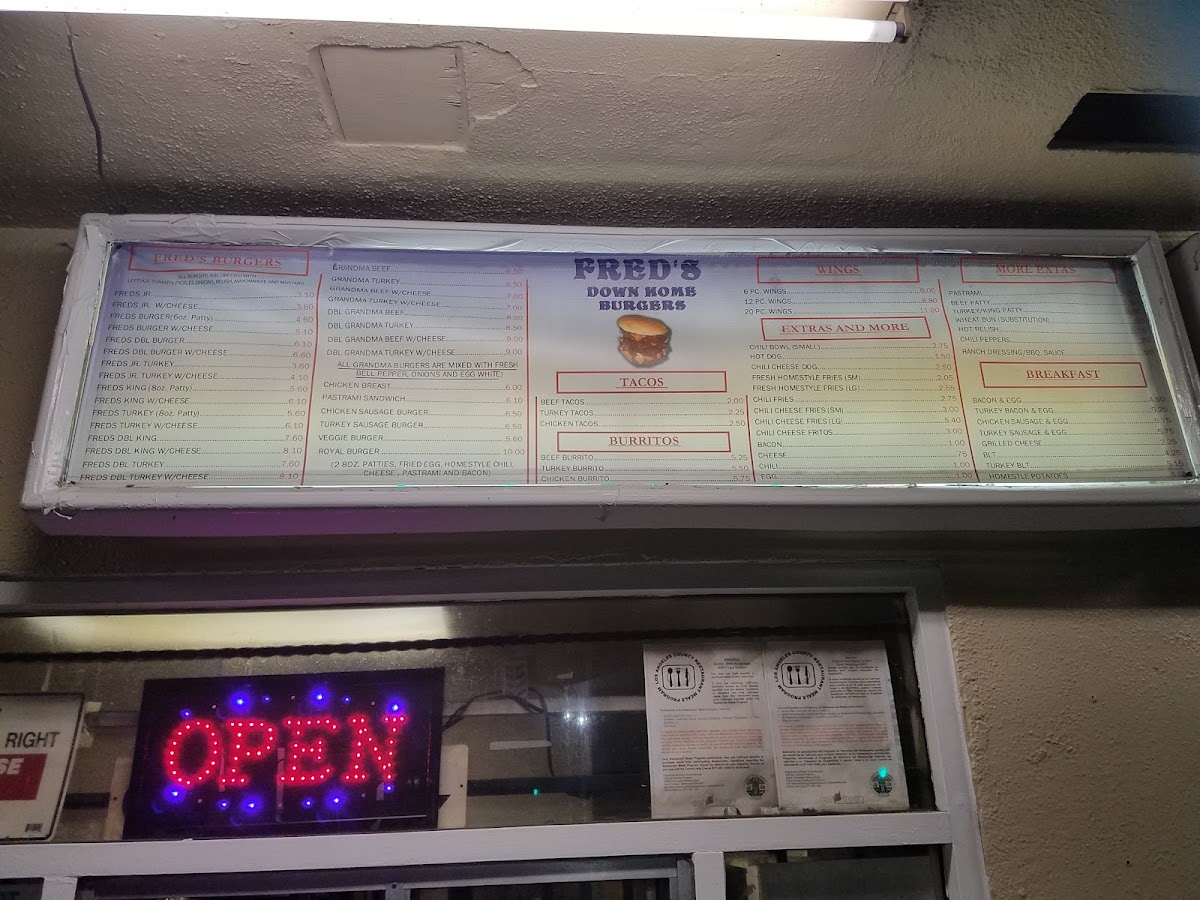 Fred's Downhome Burgers, where every bite takes you on a flavorful journey! Nestled at 2524 W Slauson Ave, Los Angeles, CA, our menu is a tribute to hearty, mouthwatering classics that will keep you coming back for more. Indulge in our signature Turkey Burger for a lean twist, or go all out with the Double Bacon Chili Cheese Burger—it's a crowd favorite! Craving something light? Try our Chicken Sandwich or the old-school Old Burger Told Me topped with fresh lettuce and tomatoes. For those who appreciate a classic combo, our Royal Burger and Fries with Cheese will hit the spot. Don’t forget to check out our tasty sides, like Fresh Homestyle Fries or the irresistible Chili Cheeseburger and Fries. Whether you're a burger aficionado or just in the mood for a quick bite, Fred's promises a memorable meal that’ll make your taste buds sing. Come hungry and experience the warmth of good food and good company at Fred’s!